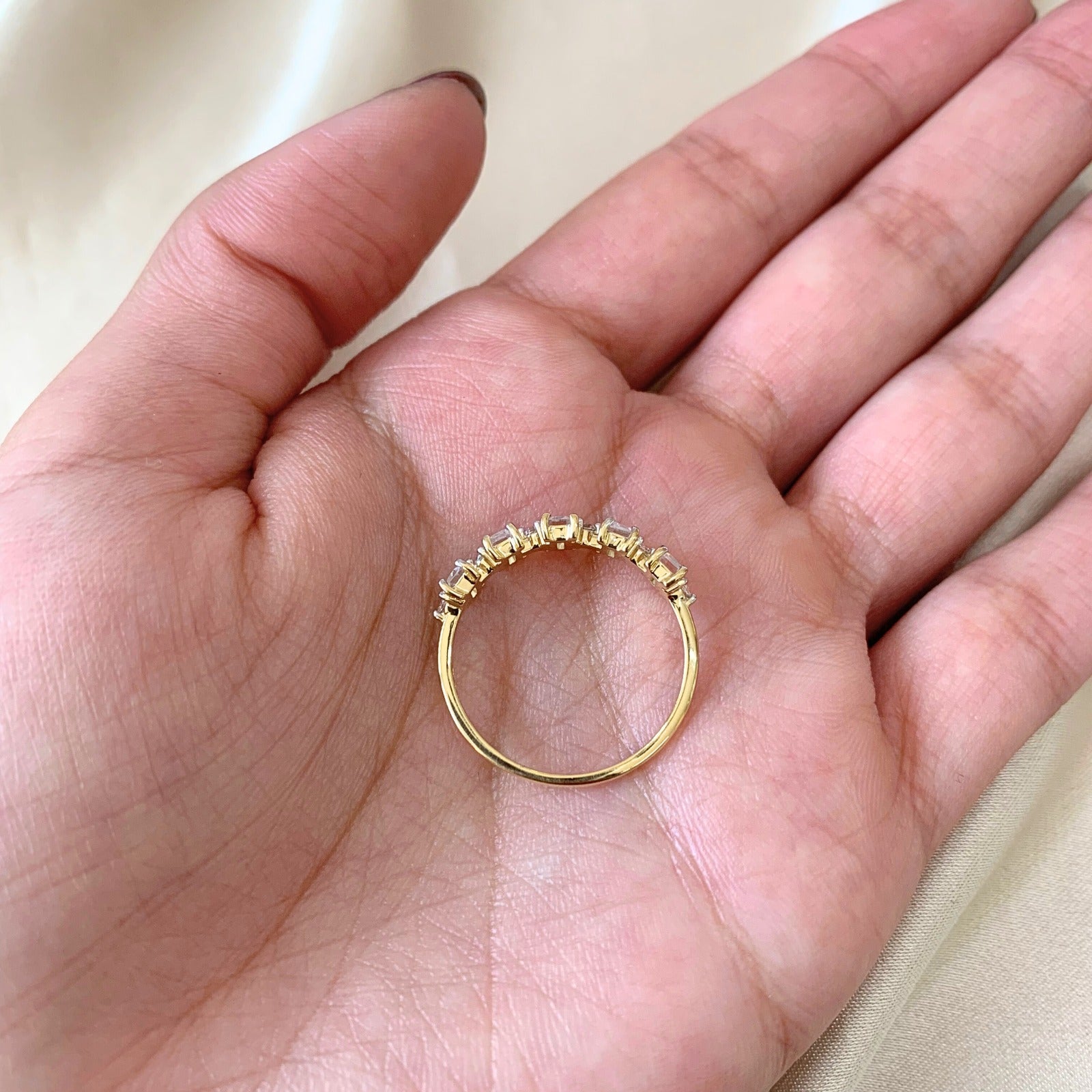 Anel Meia Aliança Luminous com Topázios Brancos em Ouro Amarelo 18K