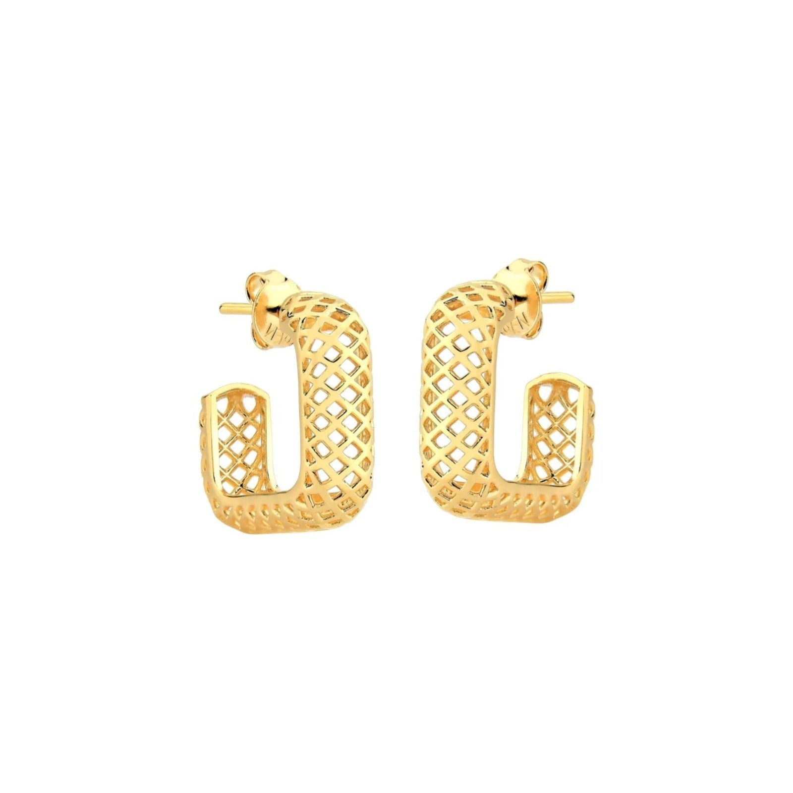Brinco Meia Argola Quadrada em Ouro Amarelo 18k-750 com Detalhe Vazado, 10mm