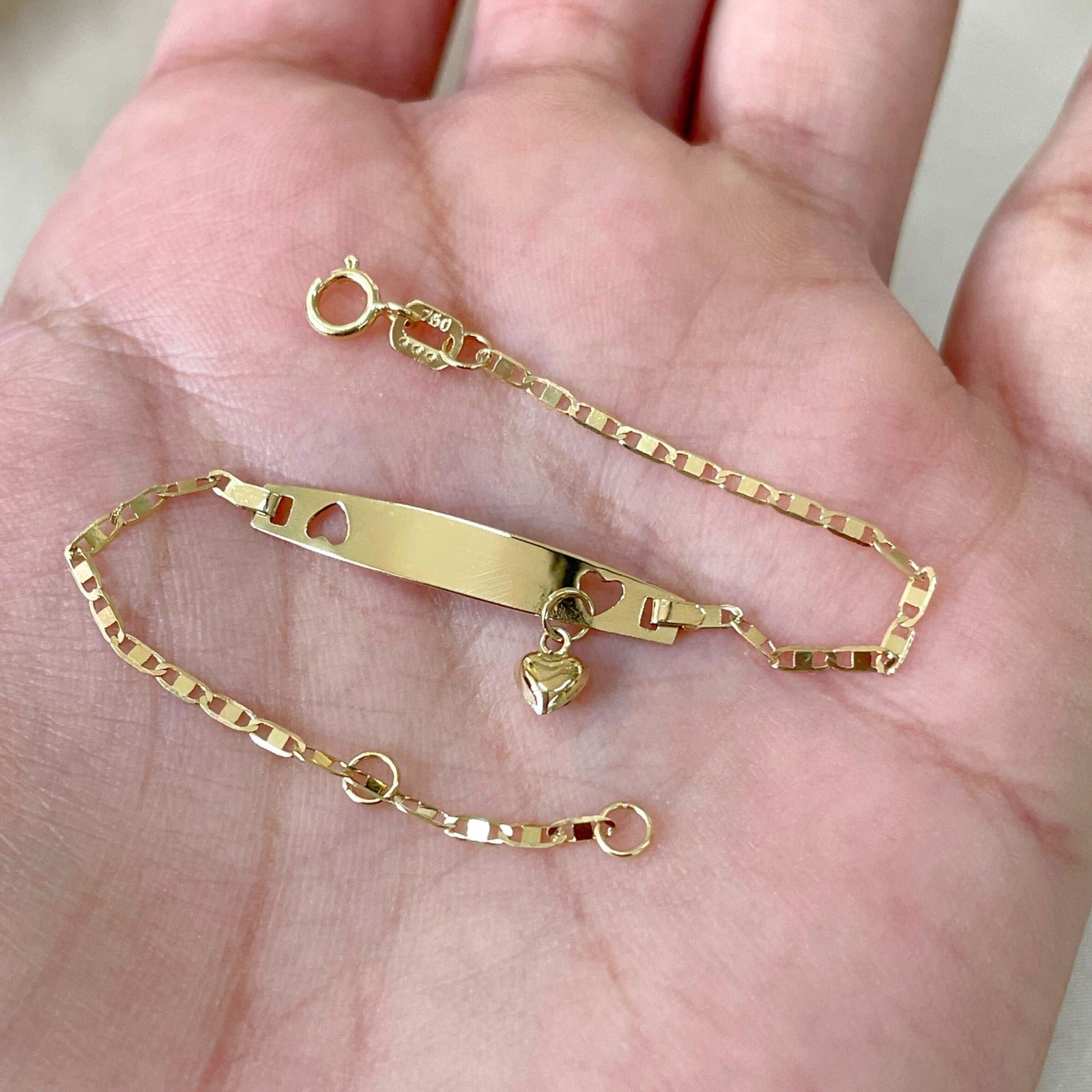 Pulseira Infantil Chapa com Corações em Ouro Amarelo 18K-750