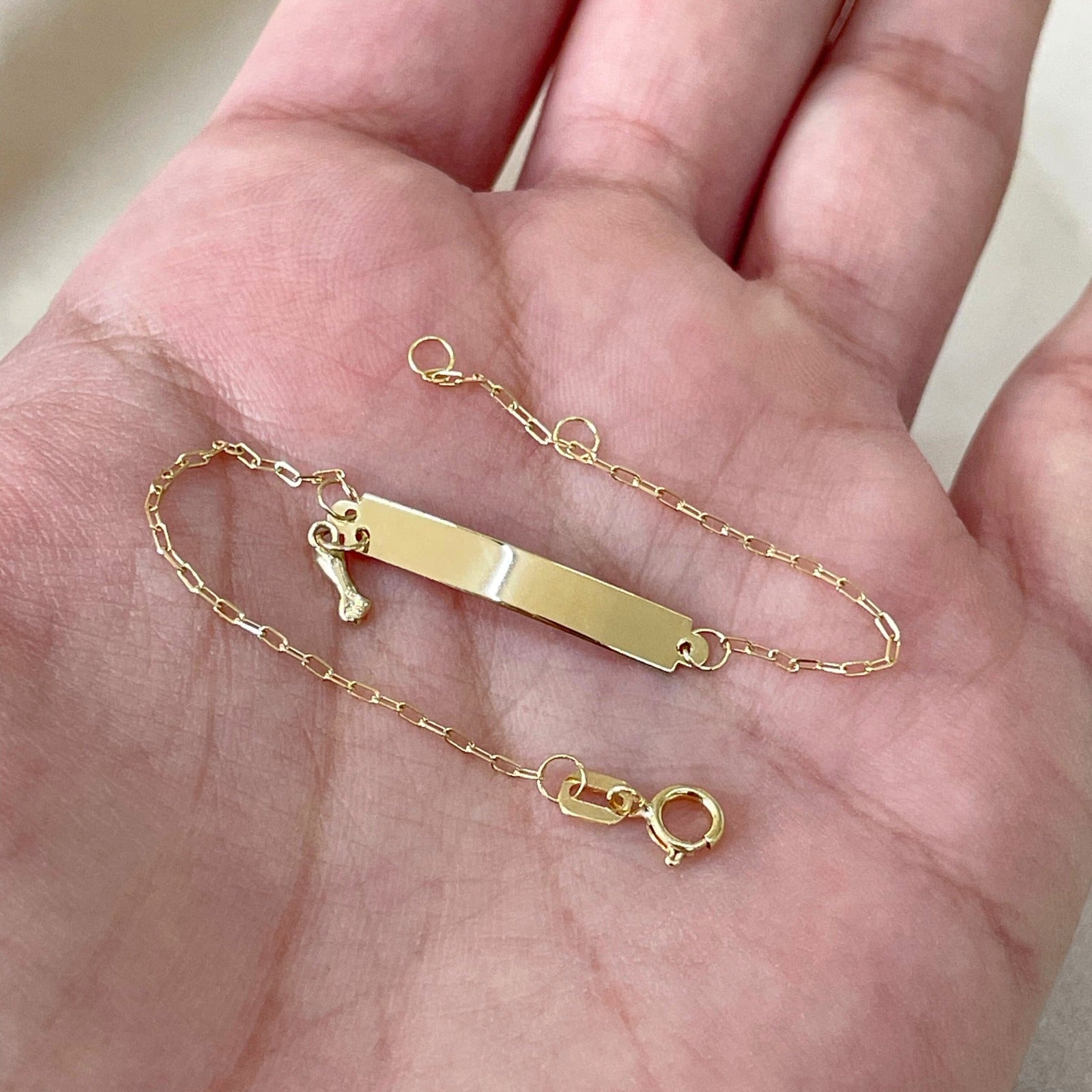 Pulseira Infantil Chapa com Figa em Ouro Amarelo 18K-750